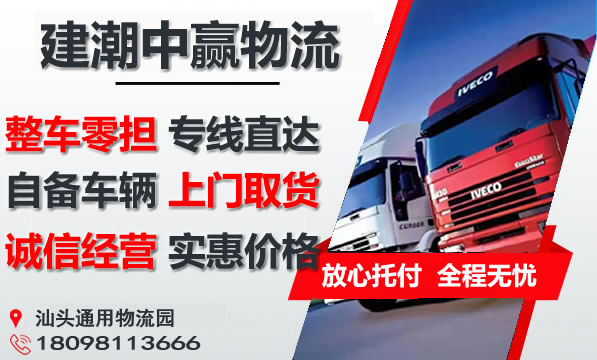 汕头到临沂莒南县物流专线是建潮中赢物流主营重点物流线路之一,提供4.2-17.5米整车包车运输,零担专线,可上门取货,量大免费提送货;汕头到临沂货运专线价格实惠,欢迎来电咨询。